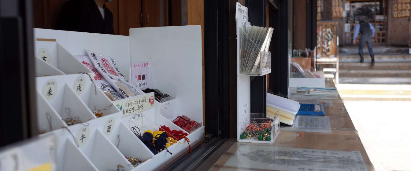 授与所では御守り等も販売しております。中でも、境内のイチョウの木を使用したころり信仰の御守りは、満願成就の御守りとして多くの方に喜ばれております。